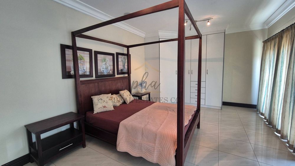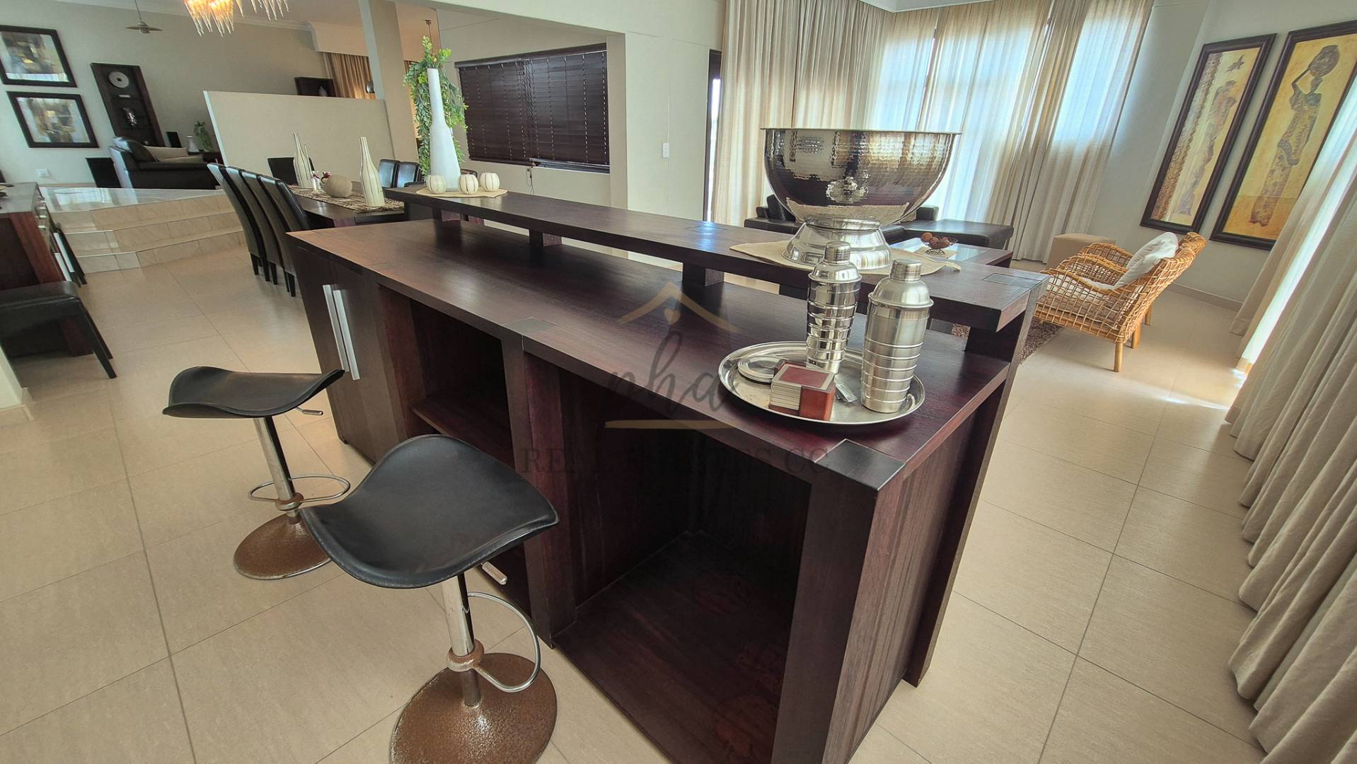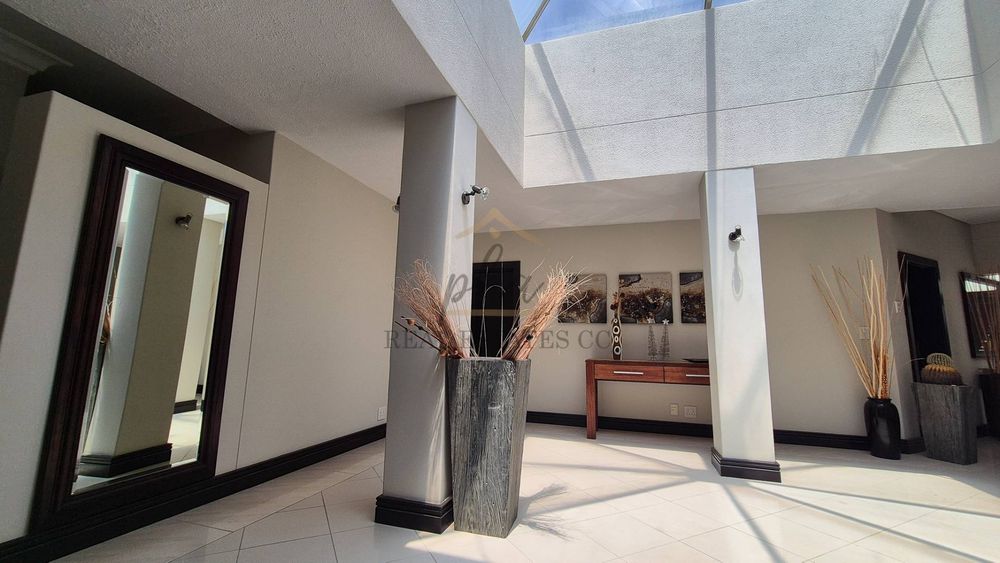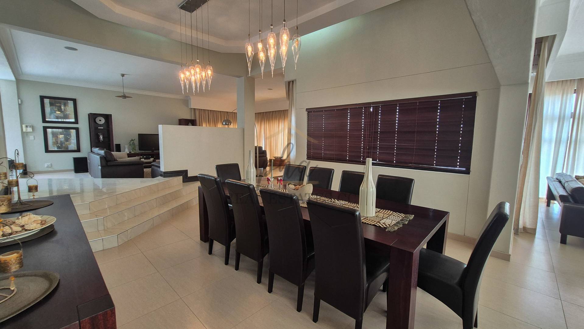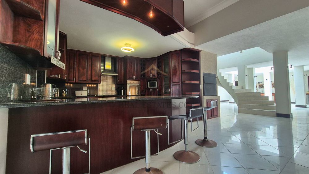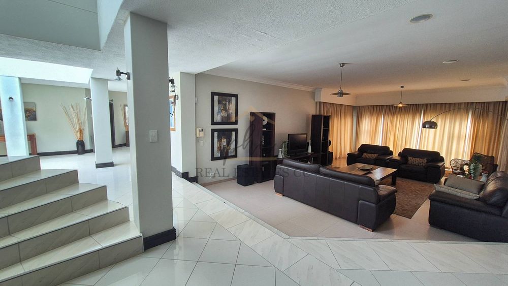 On the lower level, you will discover three distinct living areas designed for a formal lounge, a TV room, and a cigar lounge. Additionally, there is a dining room, kitchen, scullery, and laundry facilities. This level also features four bedrooms and three bathrooms.