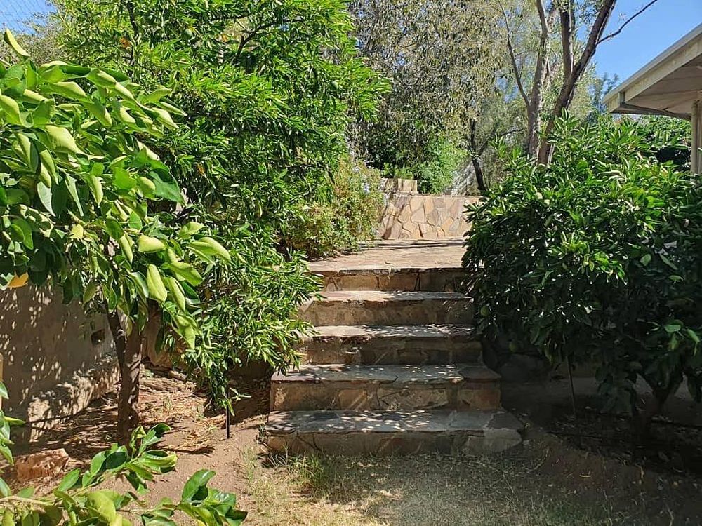 The pool patio is reinforced by an engineer-designed retaining wall, and the terraced garden boasts a flourishing citrus orchard, a prolific pecan nut tree, and a vibrant flower garden — creating a peaceful, holiday-like atmosphere right at home.