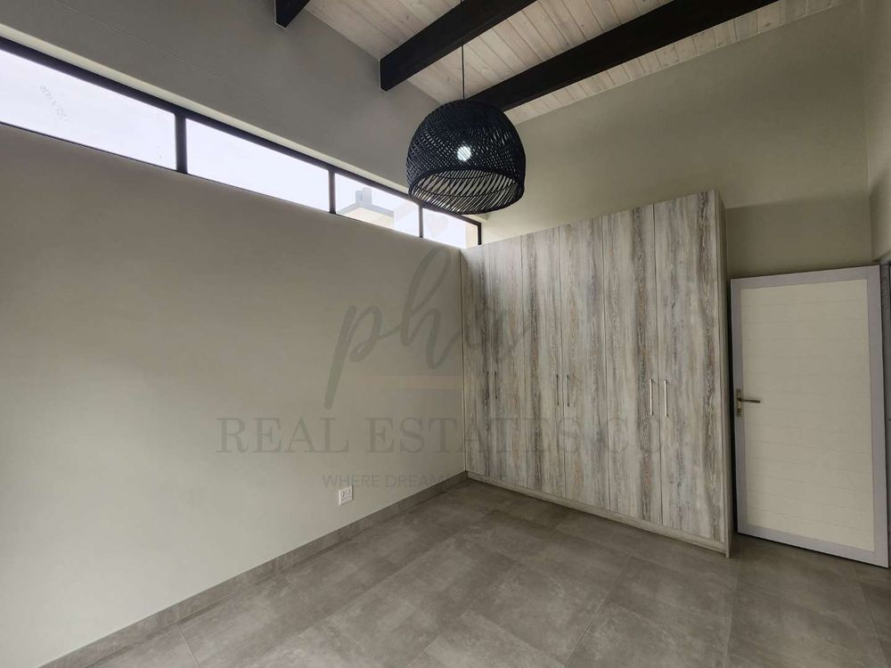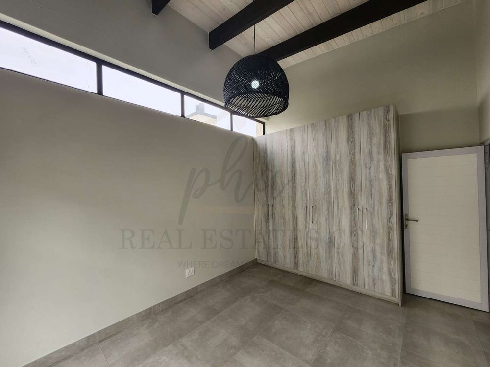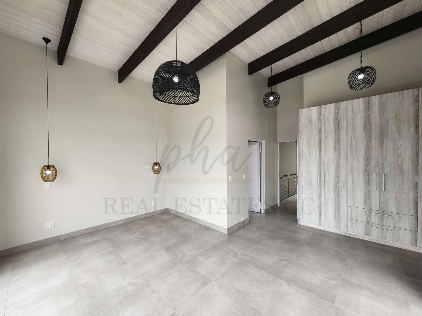 Exposed roof trussed in bedrooms.