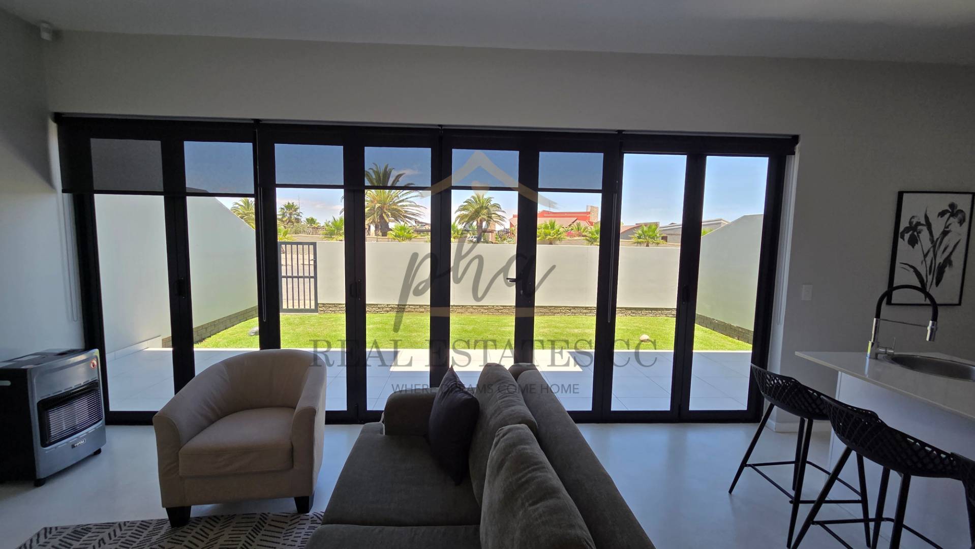 Living area opens up towards patio and courtyard.