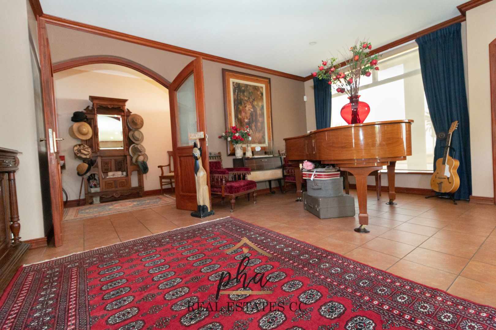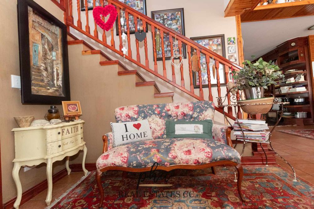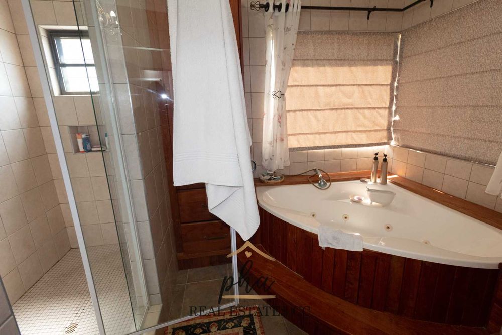 As you enter, your attention is drawn to the pre-contemporary décor throughout this house, a blend of the old world with a sense of the new. Entering into an extensive open-plan living area, directly on the left you will find a private entertainment and lounge area where one could have huge parties in this great room, adjoining a fully equipped kitchen that is integrated with two dining areas, formal lounge, guest WC and a hallway leading you to the indoor plunge pool, guest and main bedrooms.