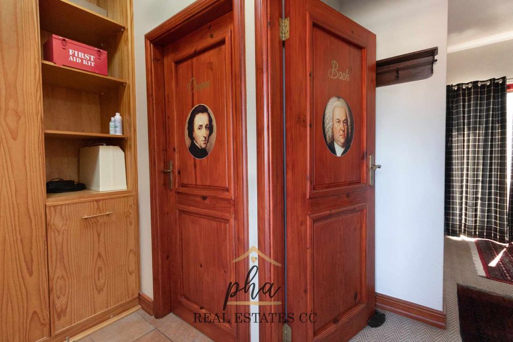 The staircase leads to three more bedrooms upstairs. Each bedroom has a unique classical music theme of great and influential composers of all time and reflects their compositions of beauty, elegance and emotion with breathtaking lagoon views that can be enjoyed from the extended balcony with a morning coffee or glass of wine at sundown.