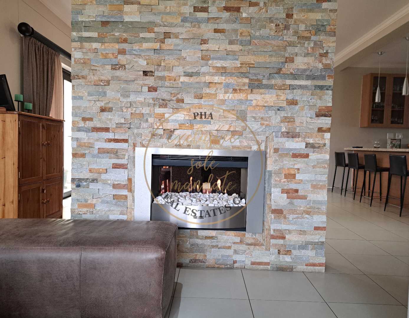 *Lounge with gas fireplace fitted with large windows overlooking the garden