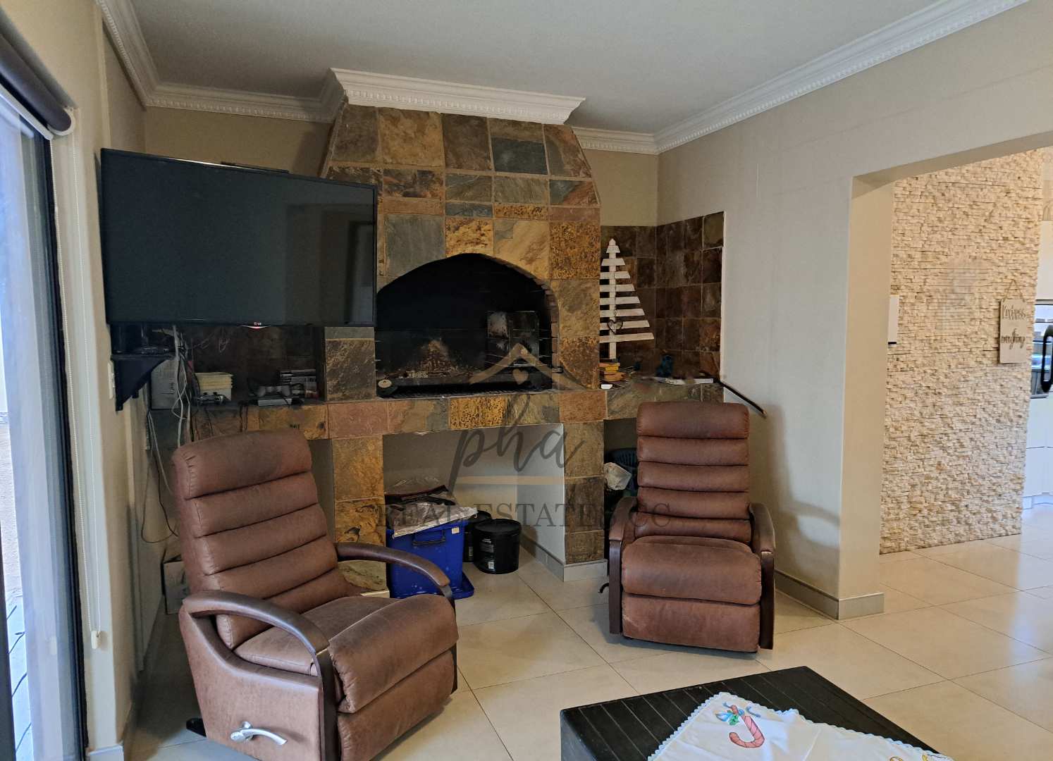 *Entertainment room with indoor BBQ, fitted with slider door opening up onto a spacious deck overlooking the back garden