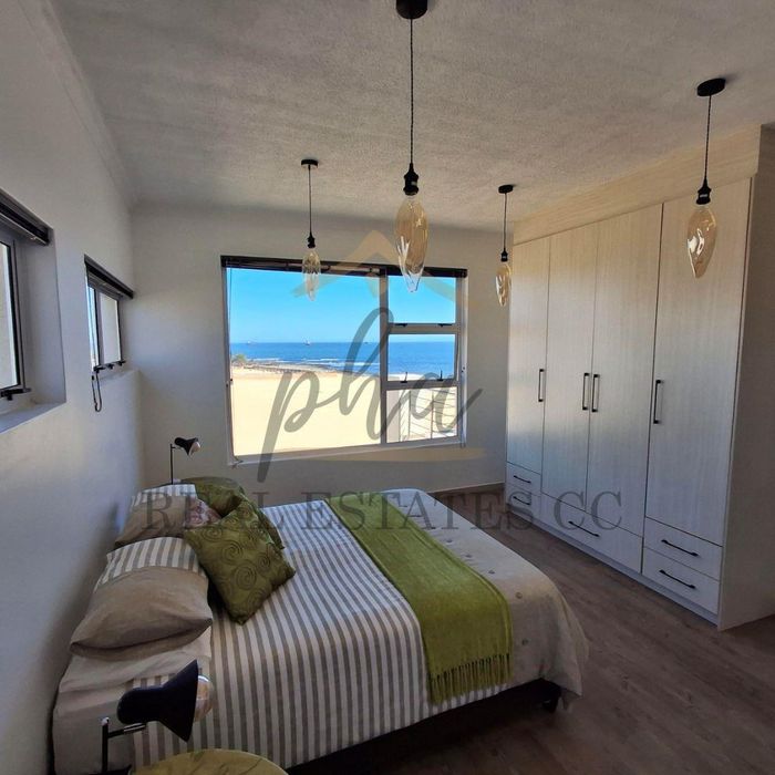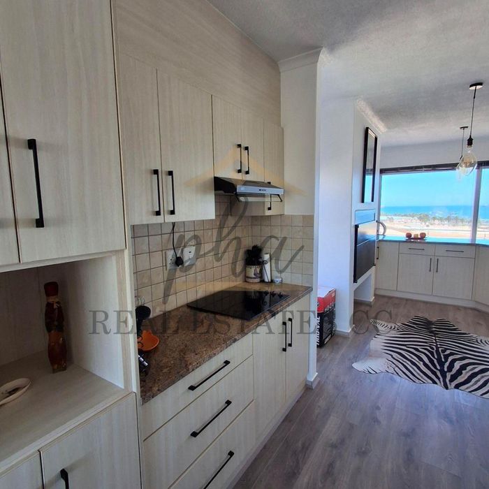 Enjoy peaceful coastal living between Swakopmund and Walvis Bay in this renovated penthouse with balconies on both levels, indoor braai, Airbnb-friendly, fully furnished, three bedrooms, two baths, double garage.