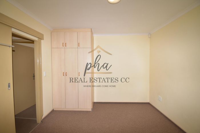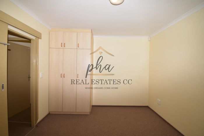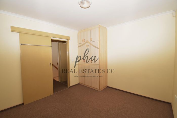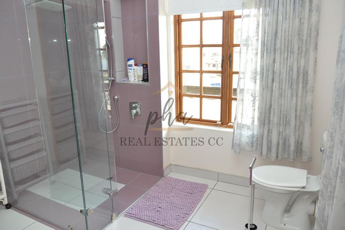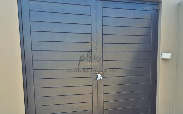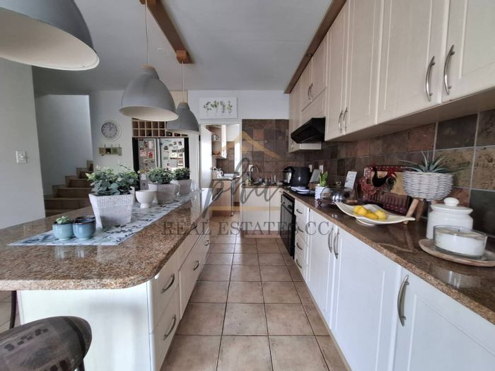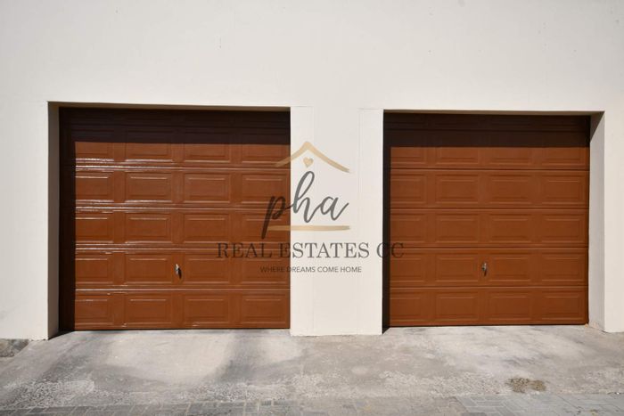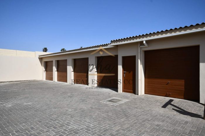 Modern 3-bedroom home near Walvis Bay Gymnasium, with security features, double garage, and courtyards, in a well-managed complex.