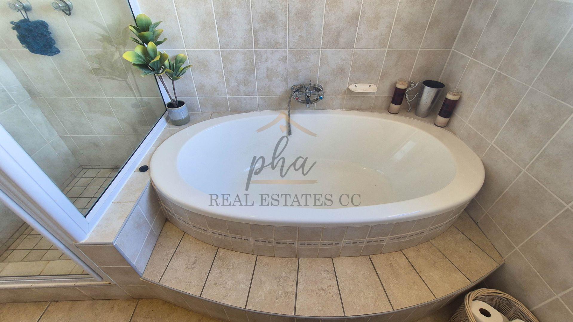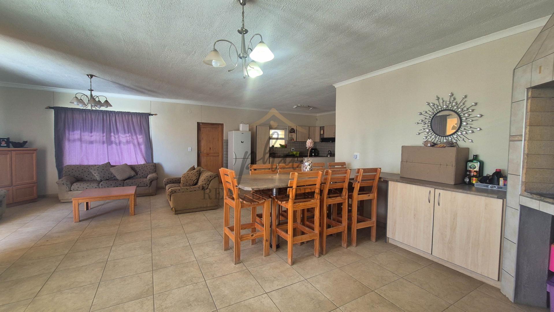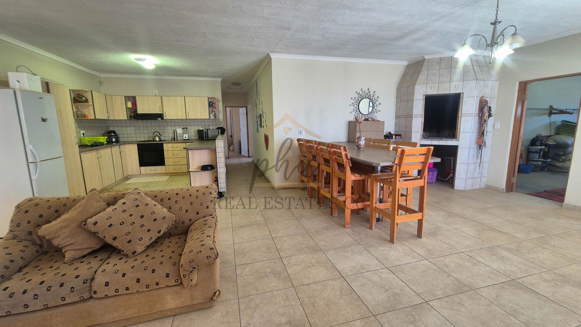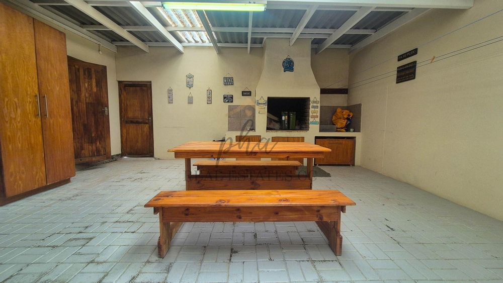 A large open-plan kitchen, living and dining area (with built-in braai) serves as the heart of the home, flowing onto a covered entertainment/ braai area perfect for year-round barbecues with a guest bathroom (with shower, toilet and basin)