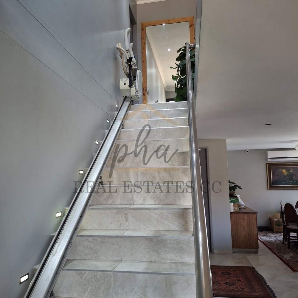 Upstairs (equipped with a stair wheelchair lift) you will find three bedrooms. The main bedroom features an en-suite bathroom and a spacious walk-in closet with a built-in safe. Two additional bedrooms share a bathroom. An enclosed balcony with beautiful sea views is accessible from two of the bedrooms, with a study area neatly positioned in the corner of the balcony.