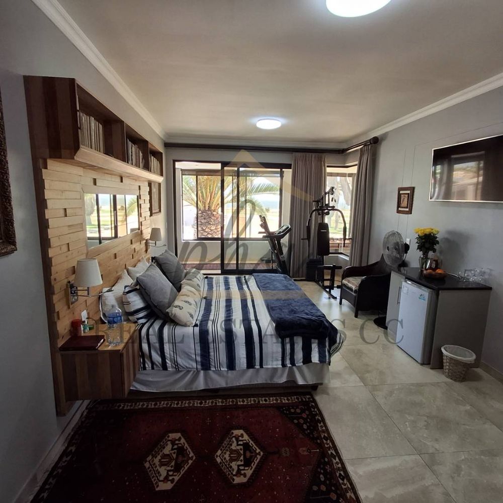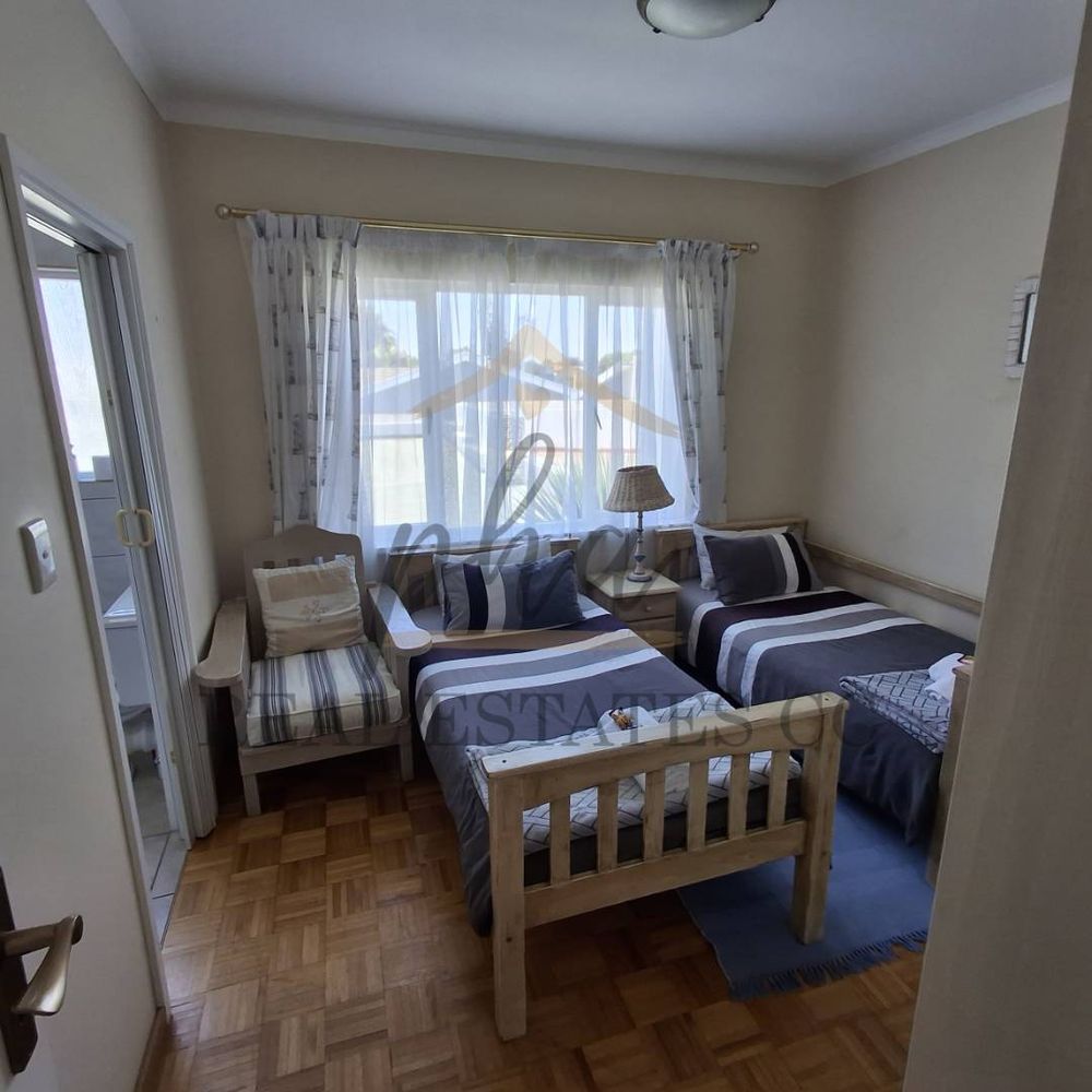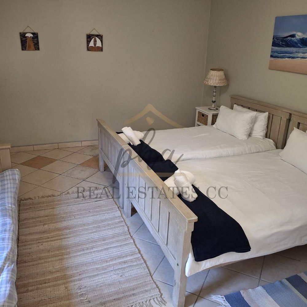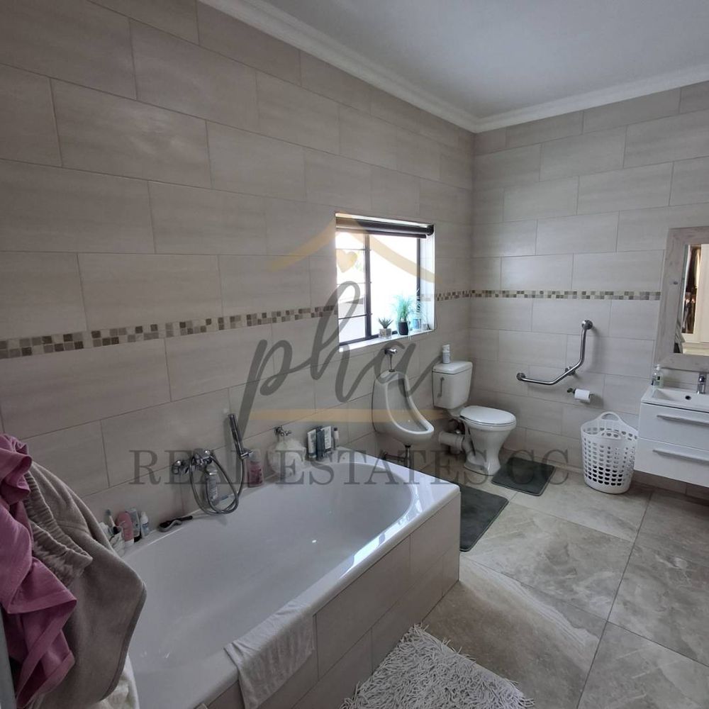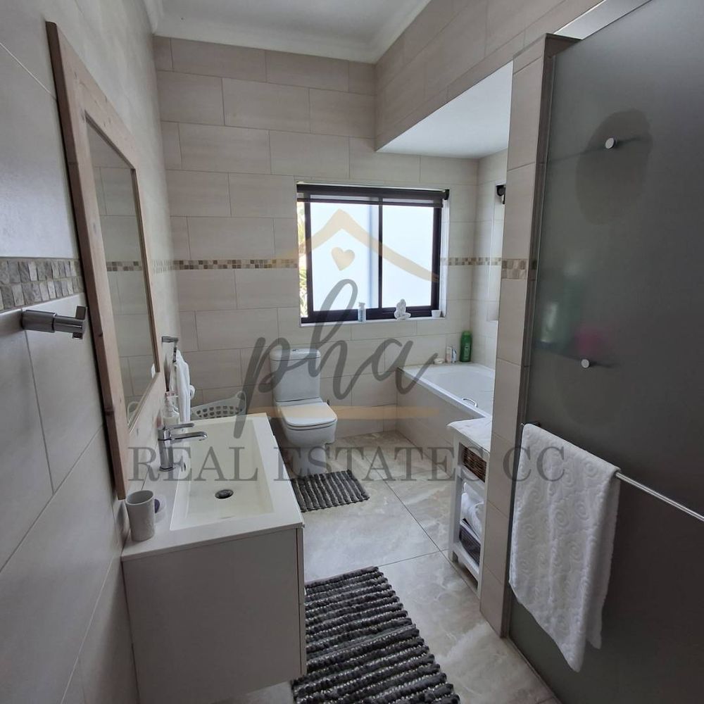 On the ground floor, there is a reception area, one bedroom with an en-suite bathroom, a guest toilet, and a separate laundry room. The courtyard features a patio and braai area, perfect for entertaining.
