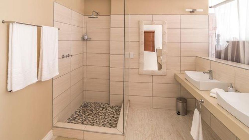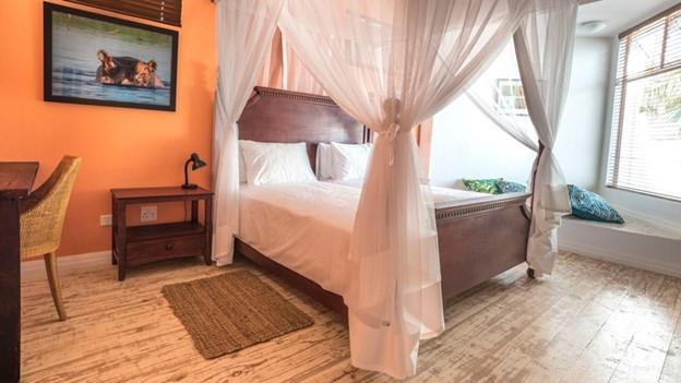 The property offers 10 ensuite bedrooms and one furnished apartment, which may be used by either a housekeeper or manager or as rental income. Nine bedrooms have ocean views. Each bedroom features: a king-sized wooden bed with Sealy Posturepedic mattress (10 years of warranty remaining); a walk-in shower; ceiling fan; mosquito netting for romance; AC with cooling & heating; & flat screen TVs. The Honeymoon Suite and its balcony on the 2nd floor offers a spectacular 180-degree view of the beach and the Atlantic – closest accommodation to the ocean in Namibia!
