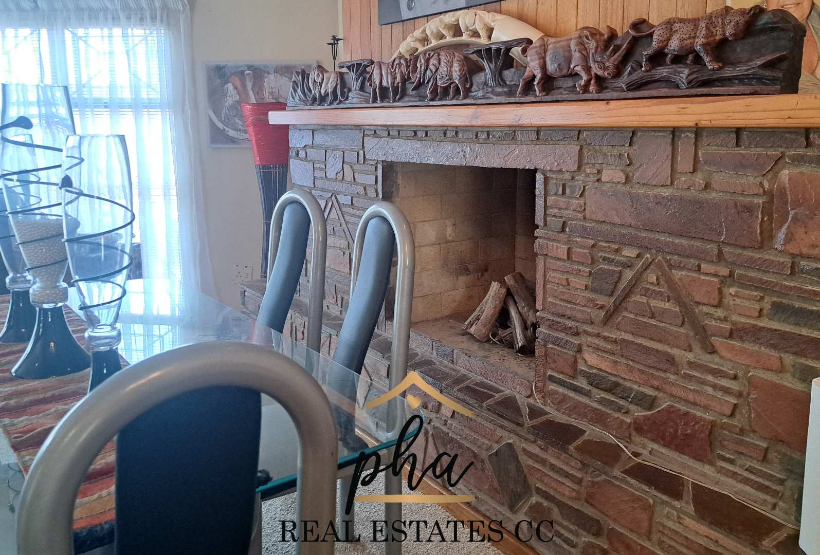 *Spacious lounge with lovely fireplace. Windows fitted with blinds.